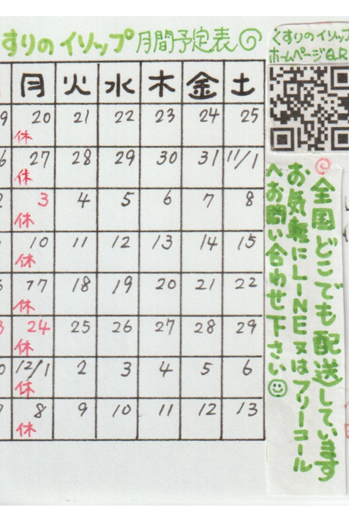 2025年10月営業カレンダー | ダイエットがうまくいかない方を東京にある街のくすり屋さんは応援いたします
