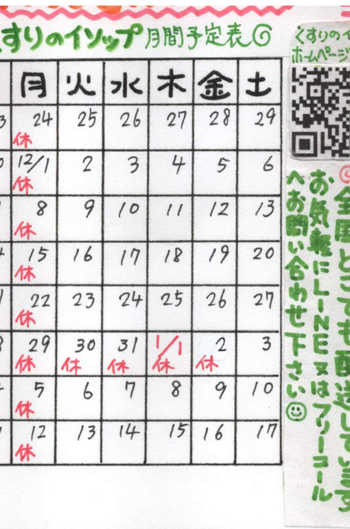 2025年11月営業カレンダー | ダイエットがうまくいかない方を東京にある街のくすり屋さんは応援いたします